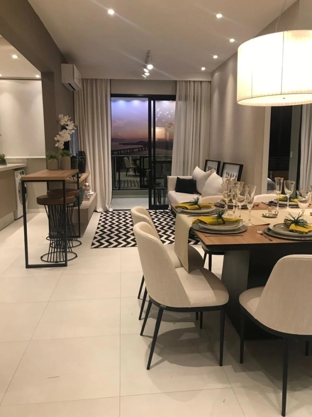 Variante Pés Conificados em Epóxi Negro Fosco: Ambiente Sala de Jantar integrada a a Mesa de Jantar Costa também Mittisa e disponível na Club Mobili.