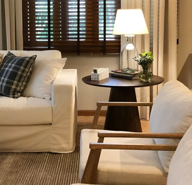 Ela é charmosa e sofisticada e dá um toque moderno ao ambiente, seja ao quarto ao lado da cama, seja dando suporte a poltronas e sofás em áreas comuns.