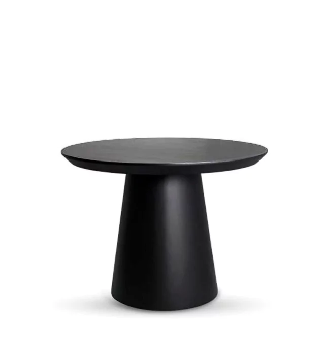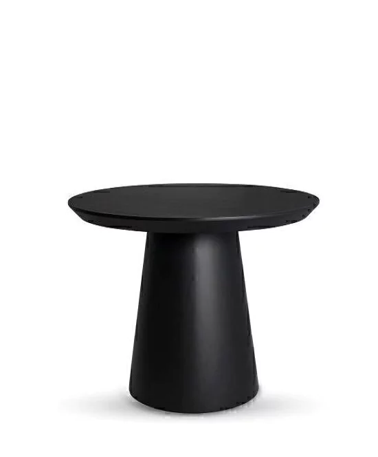 - Sua base pintada em preto, tampo em madeira e borda preta.