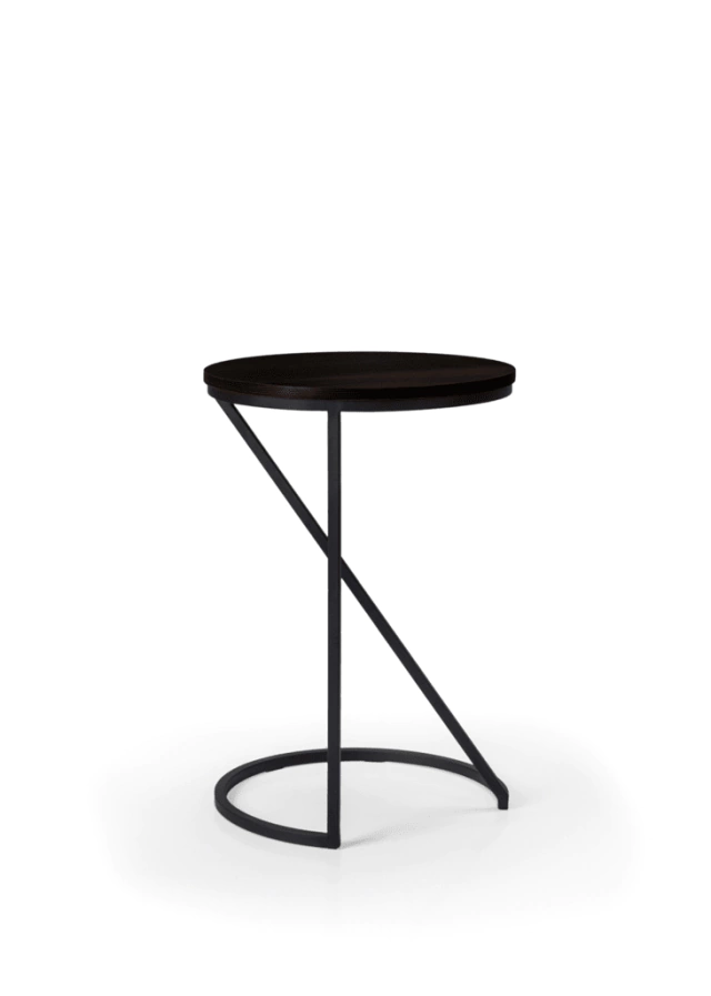 Mesa Lateral Pulim, design Vitor Linsmeyer, dando suporte a Poltrona Narro.